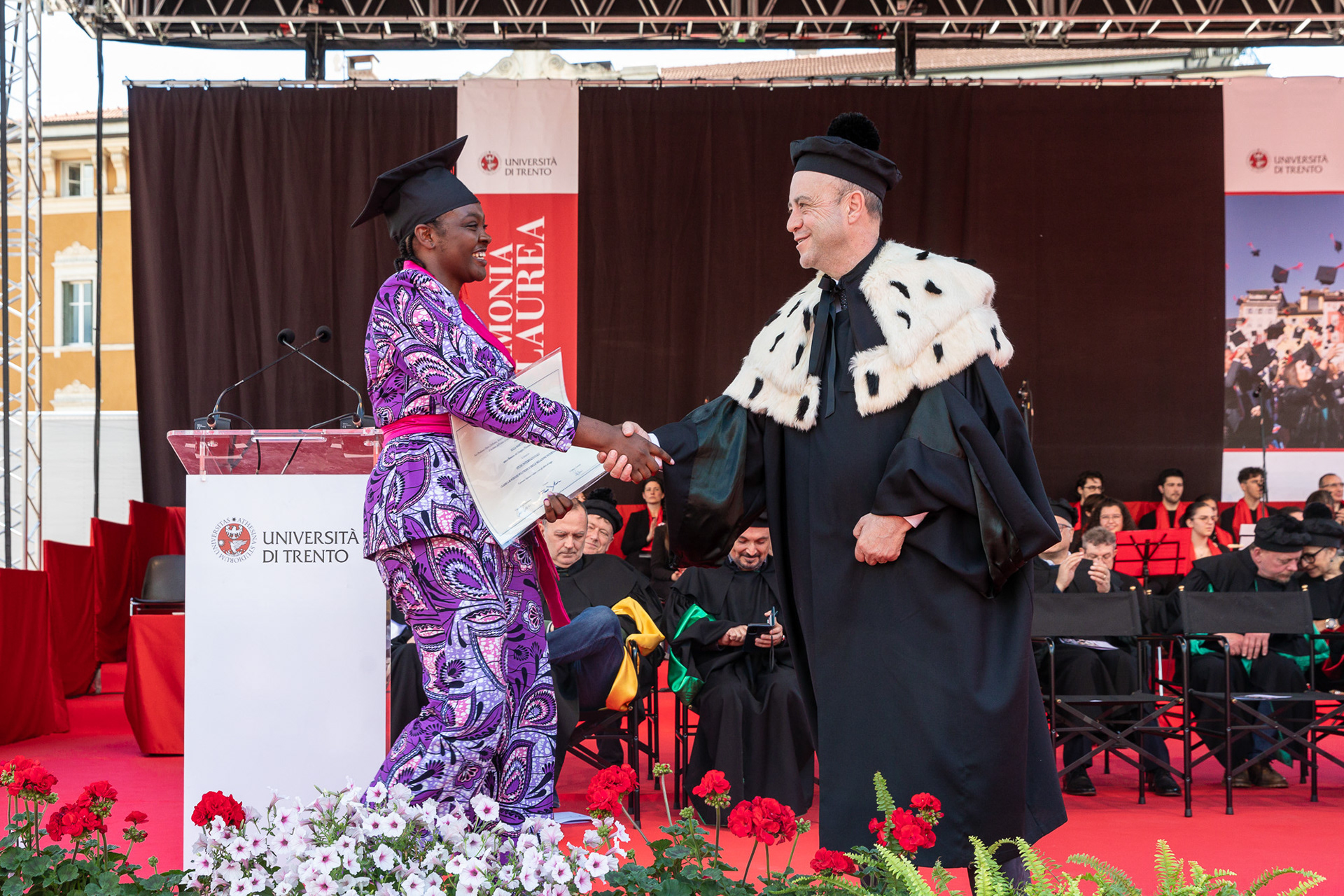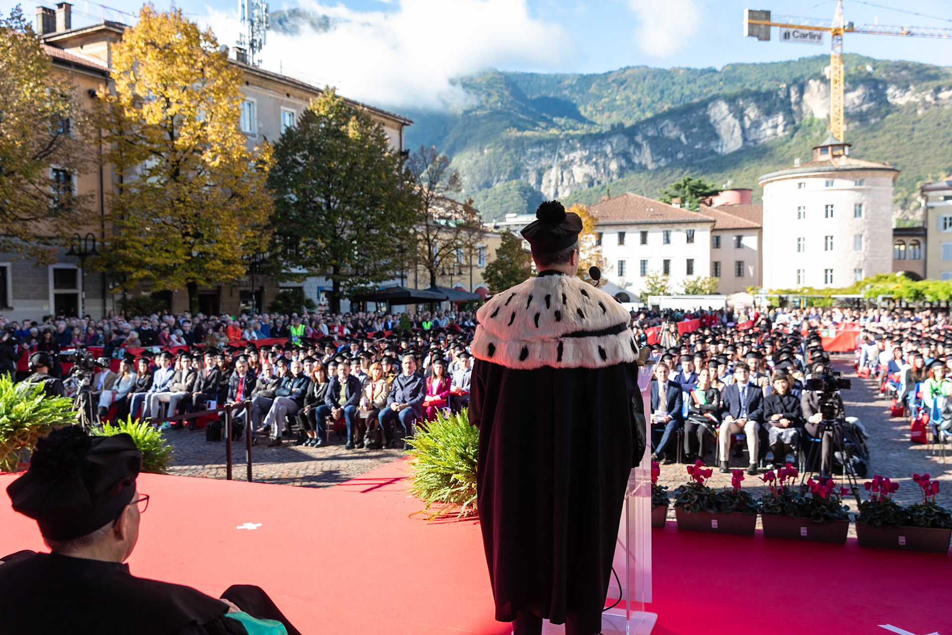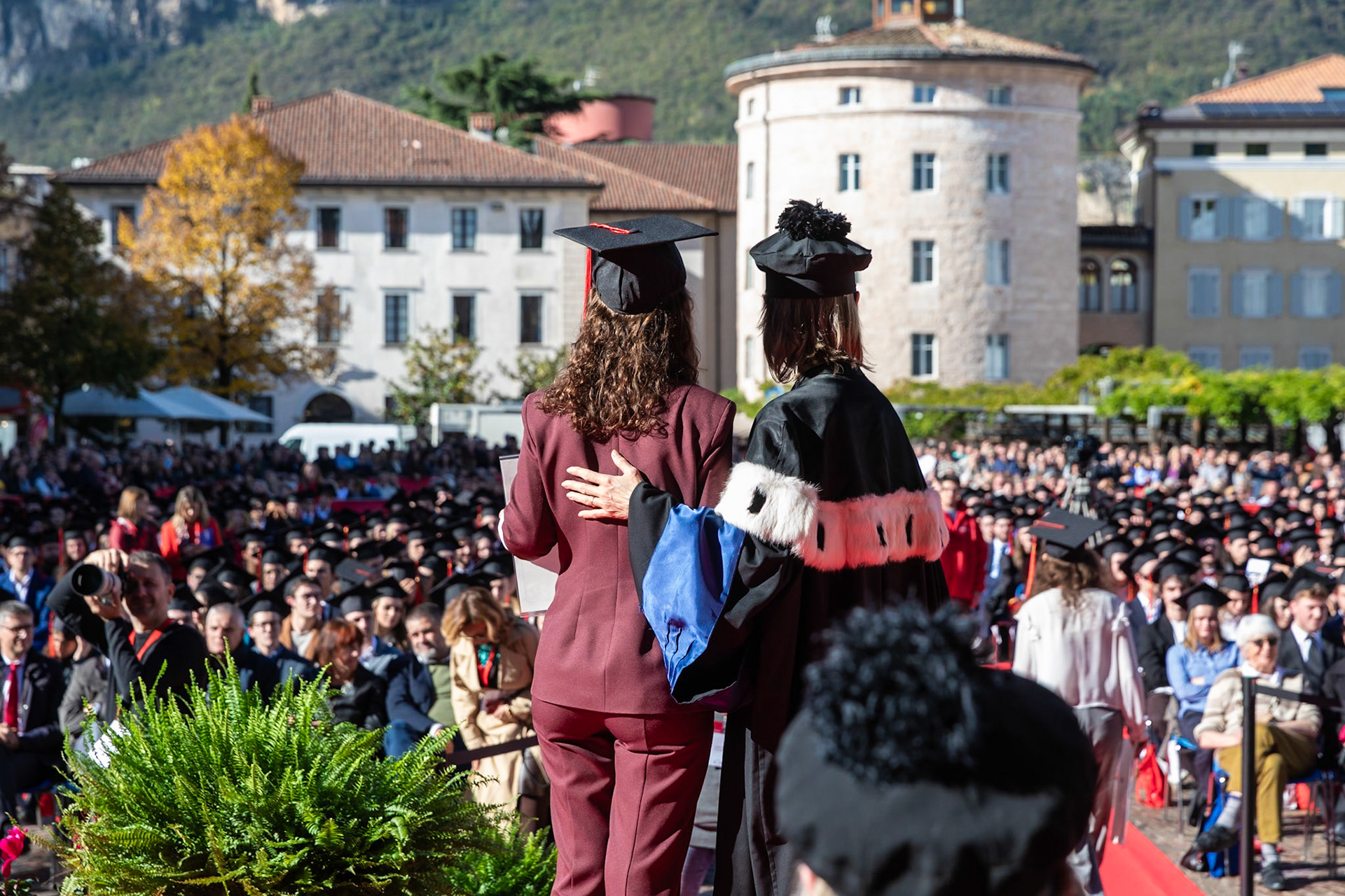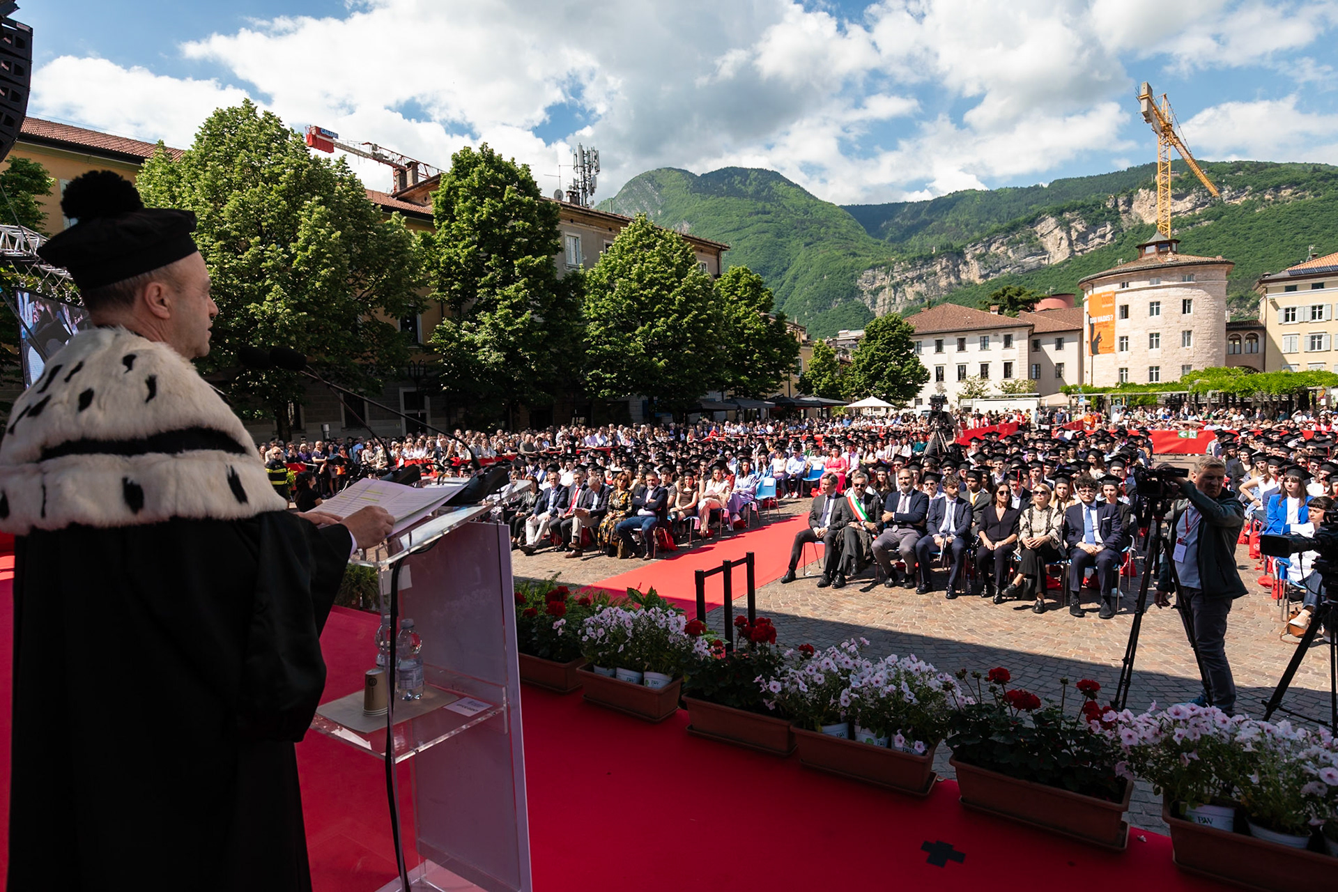 Cerimonia di laurea Unitn, 12 maggio 2023, piazza Fiera, Trento.